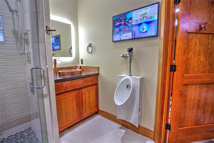 There’s even a TV in the bathroom, as well as a urinal.