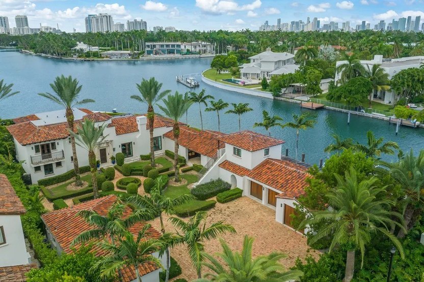 Sunset Lake views: This Spanish-style estate nestled between North Bay Road and Sunset Island has deep water frontage and two docks.